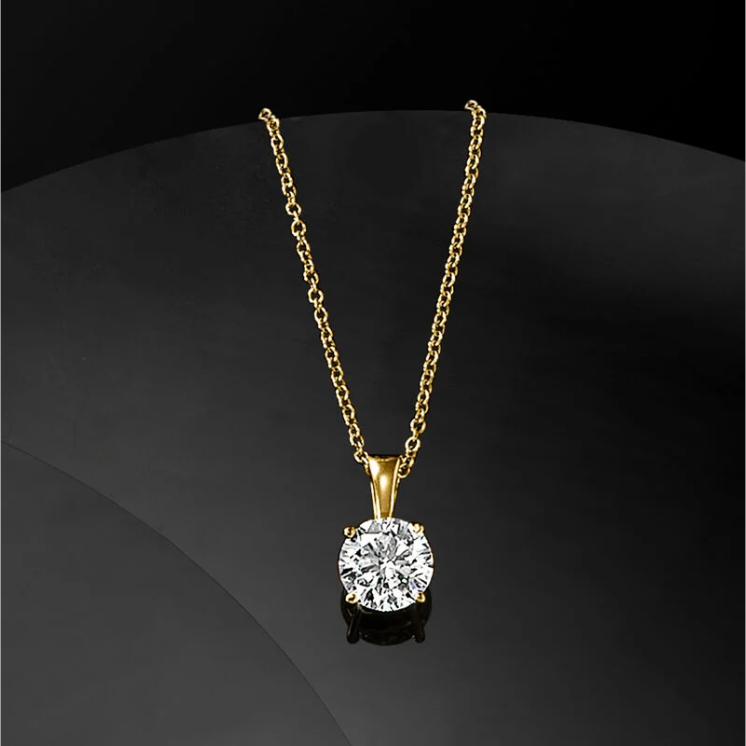 1.00-carat lab-grown diamond solitaire necklace in 14K gold.