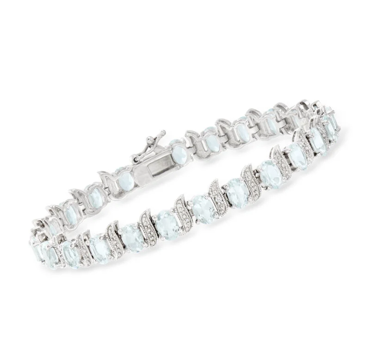 9.50-carat total weight aquamarine, diamond, and sterling silver tennis bracelet