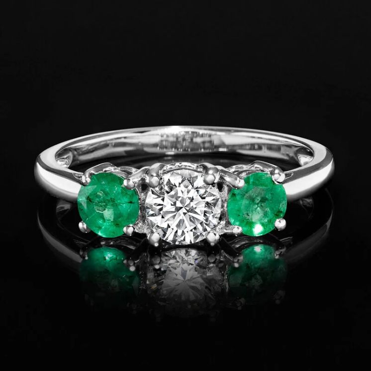 Gemstone 2:Emerald ( Color: Green, Quantity: 2, Shape & Cutting Style: Round, Weight: 0.40 ct. t.w., Size: 4 mm)