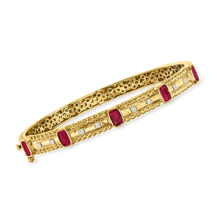 Gemstone 1:Ruby ( Color: Red, Quantity: 5, Shape & Cutting Style: Emerald, Weight: 1.50 ct. t.w., Size: 5×3 mm)